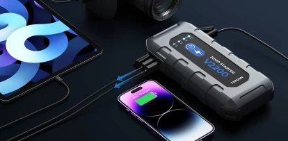 Παρουσιάζουμε το TOPDON V2200, έναν εξαιρετικό φορητό εκκινητή μπαταρίας που έχει σχεδιαστεί έτσι ώστε να παρέχει εντυπωσιακό ρεύμα αιχμής 2200A για ταχεία φόρτιση μπαταριών μολύβδου οξέος 12V μέσα σε δευτερόλεπτα. Αυτή η ευέλικτη συσκευή εξασφαλίζει άμεση και ασφαλή ανάφλεξη για μεγάλη ποικιλία οχημάτων, όπως αυτοκινήτων, σκαφών, μοτοσυκλετών και φορτηγών. Με εντυπωσιακή συμβατότητα με βενζινοκίνητα οχήματα έως 8,0L και πετρελαιοκίνητα οχήματα έως 6,0L, είναι ο τέλειος σύντροφος για κάθε ανάγκη που έχετε για ισχύ.