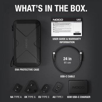 Ο φορτιστής U65 65-Watt USB-C είναι σχεδιασμένος για την επαναφόρτιση των εκκινητών λιθίου NOCO Boost X. Σχεδιασμένος για ασφαλή και αποτελεσματική επαναφόρτιση των GBX45, GBX55, GBX75 και GBX155 έως και πέντε φορές πιο γρήγορα από τους παραδοσιακούς φορτιστές τοίχου USB ή τους φορτιστές αυτοκινήτου.