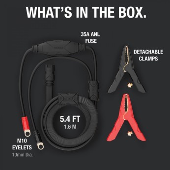 Οι Ακροδέκτες Μπαταρίας GPA002 HD συνδέονται απευθείας στην έξοδο GENIUSPRO25 ή το συμβατό καλώδιο επέκτασης GPA001 10'. Οι επανασχεδιασμένοι σφιγκτήρες HD με ενσωματωμένες κυψελωτές οπές επιτρέπουν την ασφαλή σύνδεση για όλους τους τύπους μπαταριών αυτοκινήτων, μπαταριών για θαλάσσιο εξοπλισμό και βαθέος κύκλου.